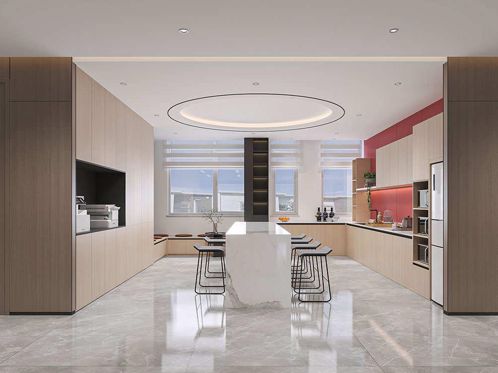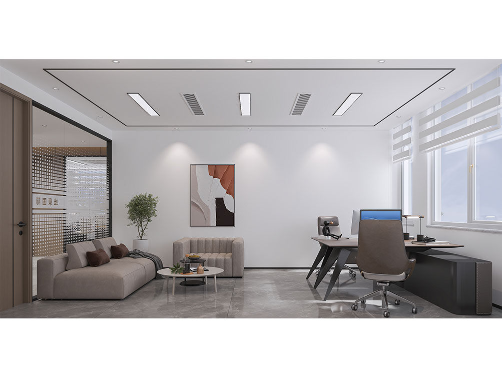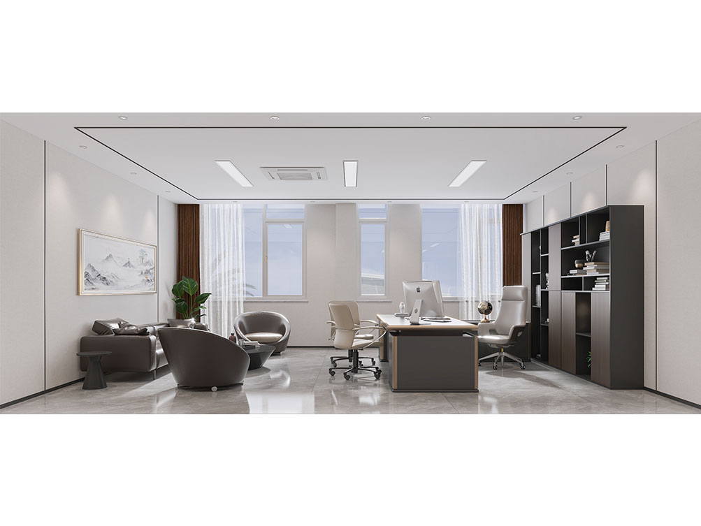 維康國際裝修效果以 “科技感 + 現(xiàn)代簡約” 為核心,主色調(diào)選用淺灰、白色搭配科技藍(lán)點綴,契合企業(yè)國際化、前沿化的定位。前臺接待區(qū)采用啞光金屬與玻璃拼接的背景墻,嵌入發(fā)光的 “維康國際” LOGO,搭配懸浮式接待臺與簡約藝術(shù)裝置,營造輕盈前衛(wèi)的第一印象;開放辦公區(qū)采用模塊化智能工位,配備可調(diào)節(jié)燈光與充電接口,桌面預(yù)留無線投屏設(shè)備,滿足高效協(xié)作需求,墻面穿插企業(yè)全球業(yè)務(wù)版圖掛畫與綠植,平衡科技感與自然氣息;獨立辦公室以木飾面與玻璃隔斷結(jié)合,保障私密性的同時提升空間通透感,書柜陳列行業(yè)典籍與企業(yè)榮譽;洽談區(qū)選用質(zhì)感布藝沙發(fā)與圓形茶幾,搭配暖光吊燈,為商務(wù)溝通營造舒適氛圍,同時在走廊、休閑區(qū)融入科技元素裝飾(如流線型燈帶、數(shù)字藝術(shù)屏),強化品牌調(diào)性,整體空間兼具國際化形象與實用辦公功能,貼合企業(yè)發(fā)展需求。